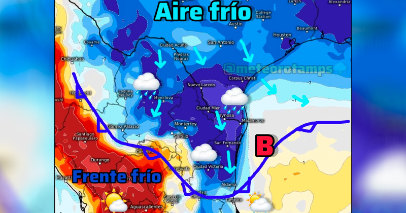 «Un nuevo frente frío cruzará territorio tamaulipeco de jueves a viernes; aire frío ocasionará lloviznas aisladas, evento «Norte» con ráfagas de viento entre los 45-65 km/h y un notorio descenso térmico».