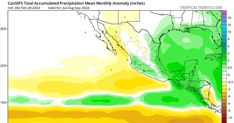 “Modelos a largo plazo exhiben un panorama altentador en cuanto probables eventos de lluvia en Tamaulipas en la medida que se acerque la mitad del verano”.