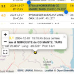 MANTE.- Un sismo de magnitud moderada se registró la tarde-noche de ayer, sábado 7 de diciembre, a 67 kilómetros al noroeste de Ciudad Mante, Tamaulipas, según reportó el Servicio Sismológico Nacional.