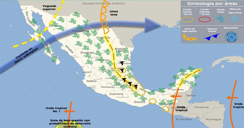 “A partir del miércoles 5 de junio, se prevé que la circulación anticiclónica en niveles medios de la atmósfera se debilite; sin embargo, se mantendrá el ambiente caluroso a muy caluroso y las temperaturas altas propias de la temporada sobre gran parte de la República Mexicana, mientras que la advección de aire cálido del Golfo de México y el Mar Caribe continuará generando temperaturas que podrían superar los 45 °C en los estados que conforman la vertiente del Golfo de México”.