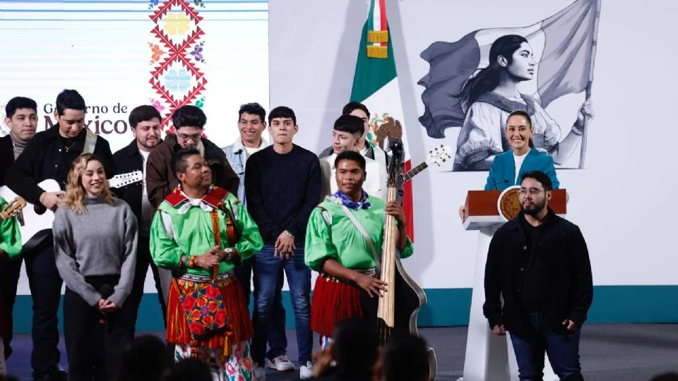 La mandataria ofreció el nuevo ‘Himno Migrante’, de la agrupación ‘Legado de Grandeza’, como un regalo a los mexicanos en el exterior, en especial en Estados Unidos, donde viven más de 12 millones de personas.
