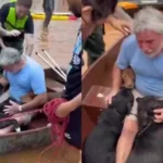 En la plataforma de ‘X’, antes Twitter, circula un video compartido RBS TV, en el que se observa al hombre arriba de una balsa, llorando de la felicidad, por haber podido rescatar a todos sus animalitos.