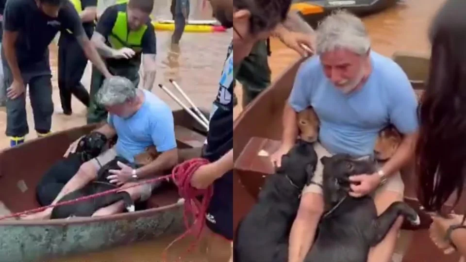 “Un hombre trasladó a los voluntarios que lo rescataron. Llegó diciendo que necesitaba recoger a sus 4 hijos, pero tenía que acompañarlos. En la situación, el hombre tenía una bolsa de colostomía y no podía mojarla. Cuando regresó, los 4 niños eran 4 cachorros”, se lee en el post del mencionado medio.