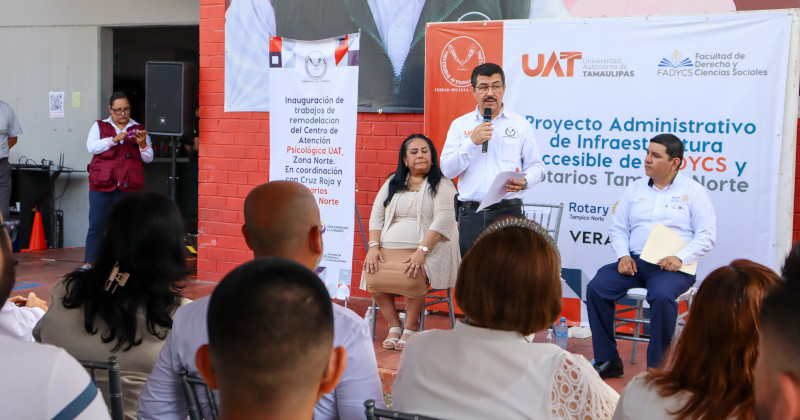 En el arranque de esta importante iniciativa, que tiene como propósito promover la educación inclusiva y brindar igualdad de condiciones a toda la comunidad universitaria, el rector Dámaso Anaya develó la placa conmemorativa para el comienzo de esta infraestructura en la Facultad de Derecho y Ciencias Sociales de Tampico (FADYCS).