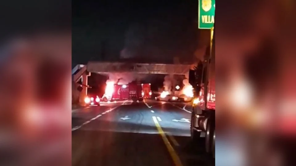 Asimismo, se informó que civiles incendiaron tráilers y un automóvil compacto a lo largo de la carretera Villahermosa-Frontera, cerca del Fraccionamiento “Carlos Pellicer”.