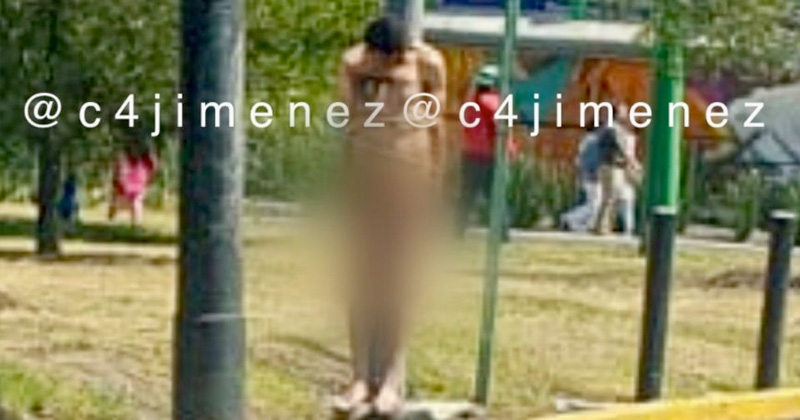 Vecinos detienen, encueran y amarran a presunto ladrón en Iztapalapa