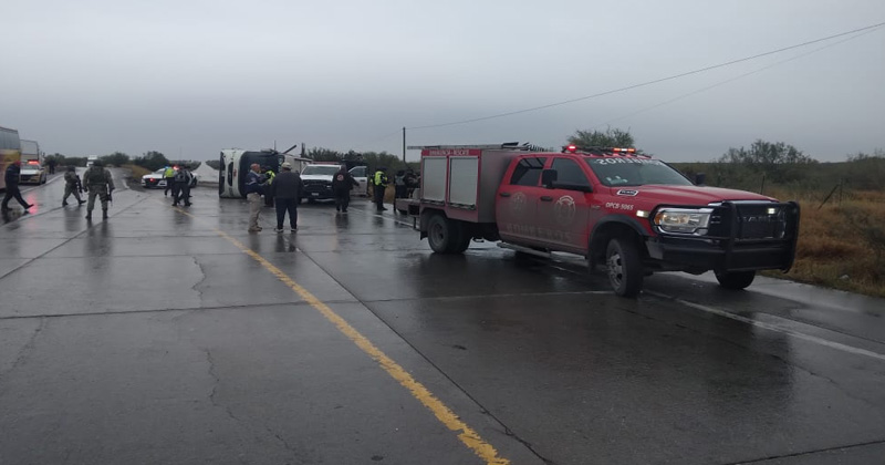 Vuelca autobús con paisanos en Nuevo Laredo; hay siete lesionados