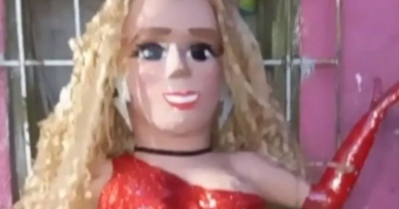 Mientras que en la mano lleva cargando un maletín dorado con varios billetes en su exterior. La piñata es tan idéntica a la famosa que decenas de internautas ya han aparecido en la página de Facebook de la piñatería para adquirir una, mientras que otros usuarios mostraron su asombro al ver que es muy parecida a la joven.