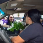 En Reservar Territoriales, Abdala Carmona dialogó con los automovilistas mientras les obsequiaba una planta.